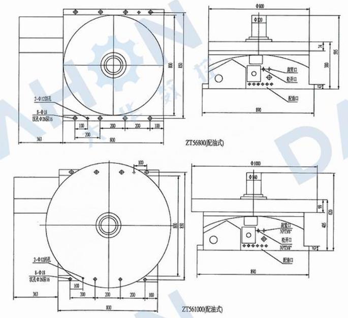 ZT 56 series NC indexing rotary table can be used on NC milling machine and machine center for carrying out equaldivision.It is driven by servo motor and mechanical rotary table with non-lifting Hirth coupling.