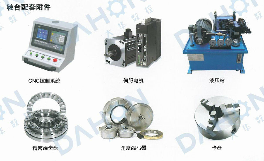 煙臺大華數控機床附件有限公司是數控機床附件設備的知名配套企業,可生產多種型號分度盤配套產品,主要產品有CNC控制系統、伺服電機、液壓站、端齒盤、角度編碼器、卡盤等。設備先進,質量過硬,可接受客戶的特殊定制產品。